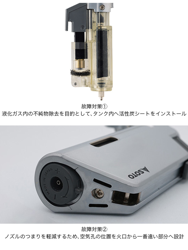 性能面においても妥協がなく、ガスタンク内への活性炭のインストールと空気孔の位置変更を実施し、製品の耐久性を高めました。