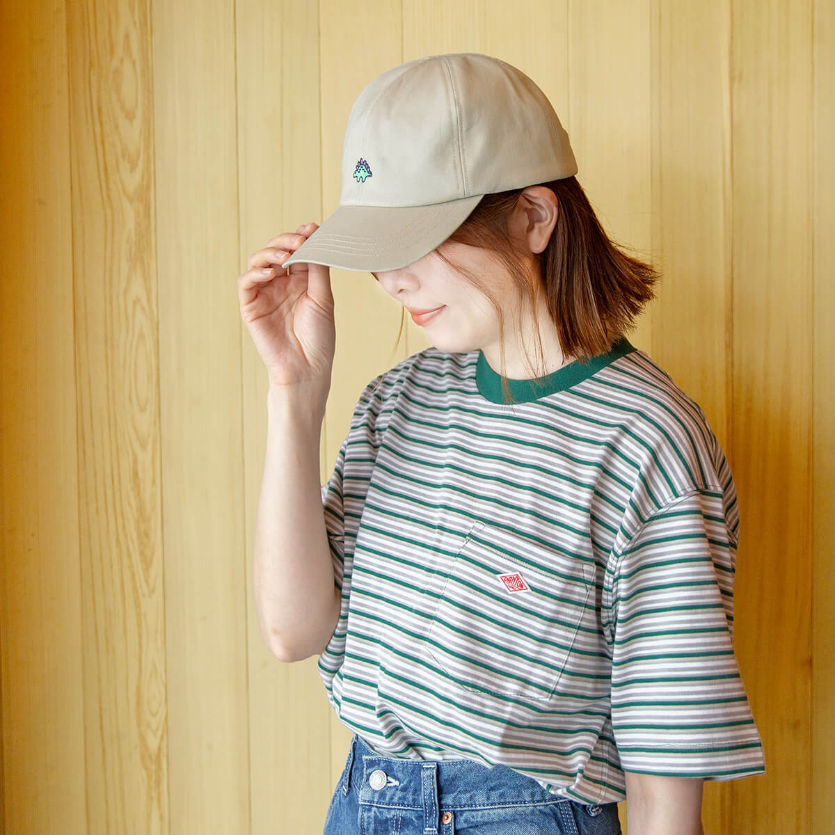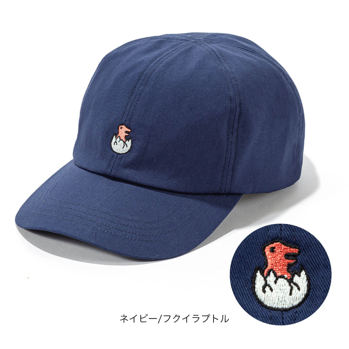 手描きイラストの刺繍がアクセントのコットンツイル6Pキャップ
