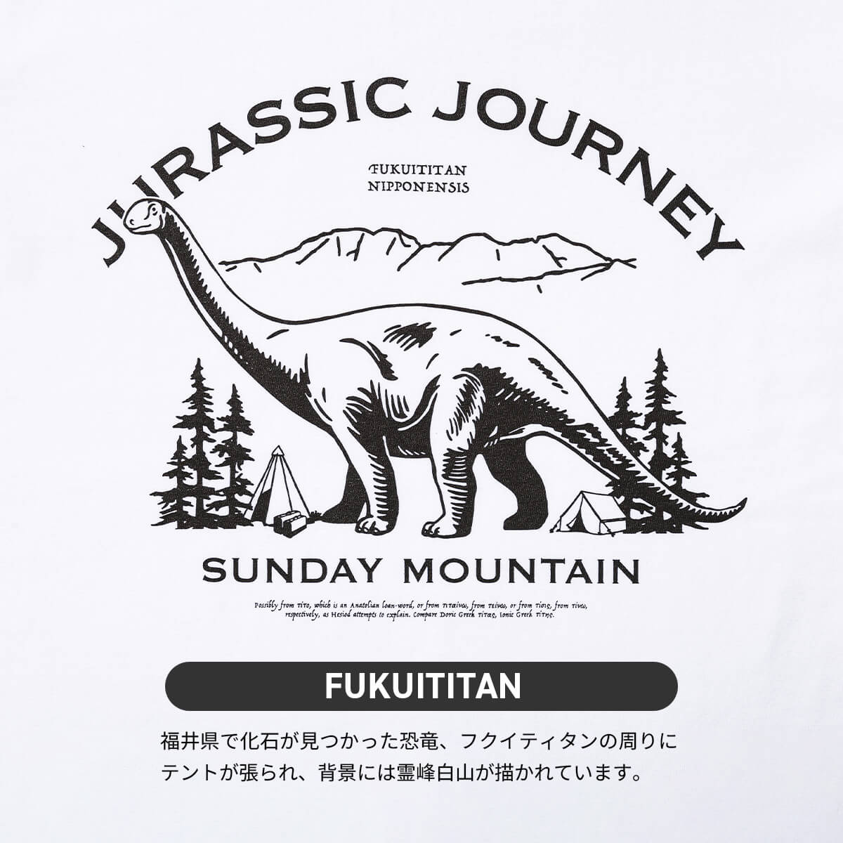 サンデーマウンテン JURASSIC JOURNEY Tシャツ(グラフィック by ジェリー鵜飼) SUNDAY MOUNTAIN ユニセックス メンズ ウィメンズ レディース トップス 半袖 恐竜 グラフィック ジュラシック ダイナソー おしゃれ キャンプ アウトドア