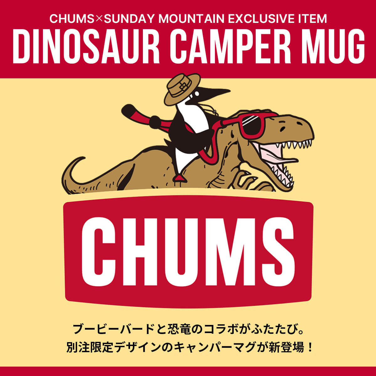 チャムス×サンデーマウンテン CHUMS別注ダイナソーキャンパーマグ CHUMS×SUNDAY MOUNTAIN dinosaur camper mug CH62-2268 コップ マグカップ ピクニック 恐竜 福井 キッズ 子供 登山 デイリーユース かわいい キャンプ アウトドア