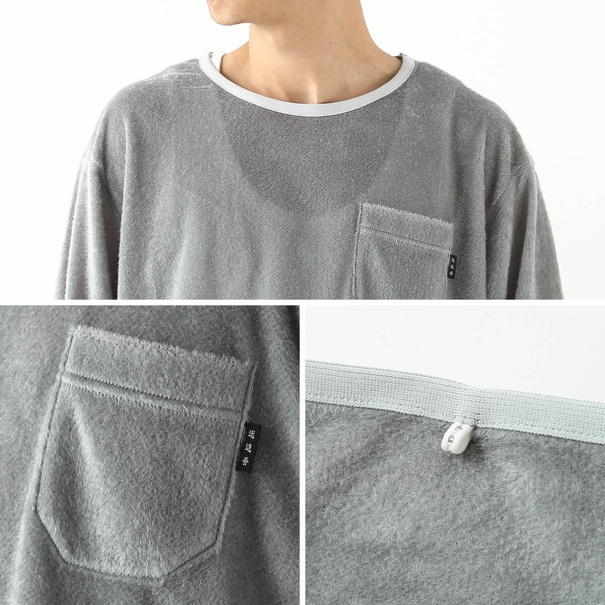 迷迭香のインラインでは半袖のみ展開されていたOCTA®ベースシャツを、特別にロングスリーブ仕様で別注しました。このアイデアは、迷迭香デザイナー・坂下氏が冬山でOCTA®をベースレイヤーとして着用した際に「驚くほど着心地が良い」と実感した経験から生まれたもの。