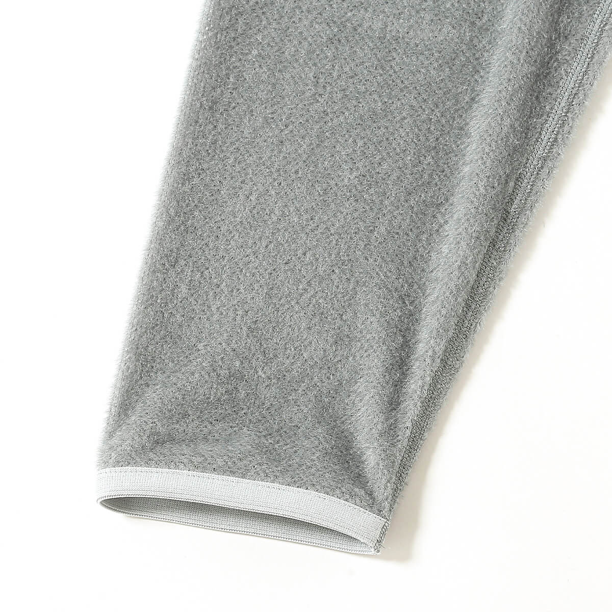 中心が空洞になった特殊なポリエステル繊維で、驚くほどの軽さと優れた保温性、そして高い吸水速乾性を実現しています。