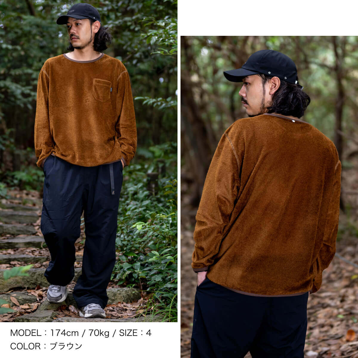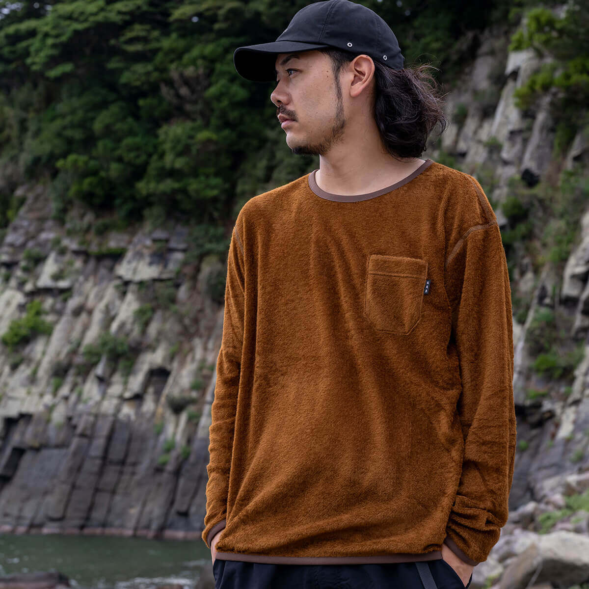 アウトドアやハイクなどのアクティブシーンでは、起毛面を裏にすることで汗の吸い上げと速乾性を最大限に発揮します。