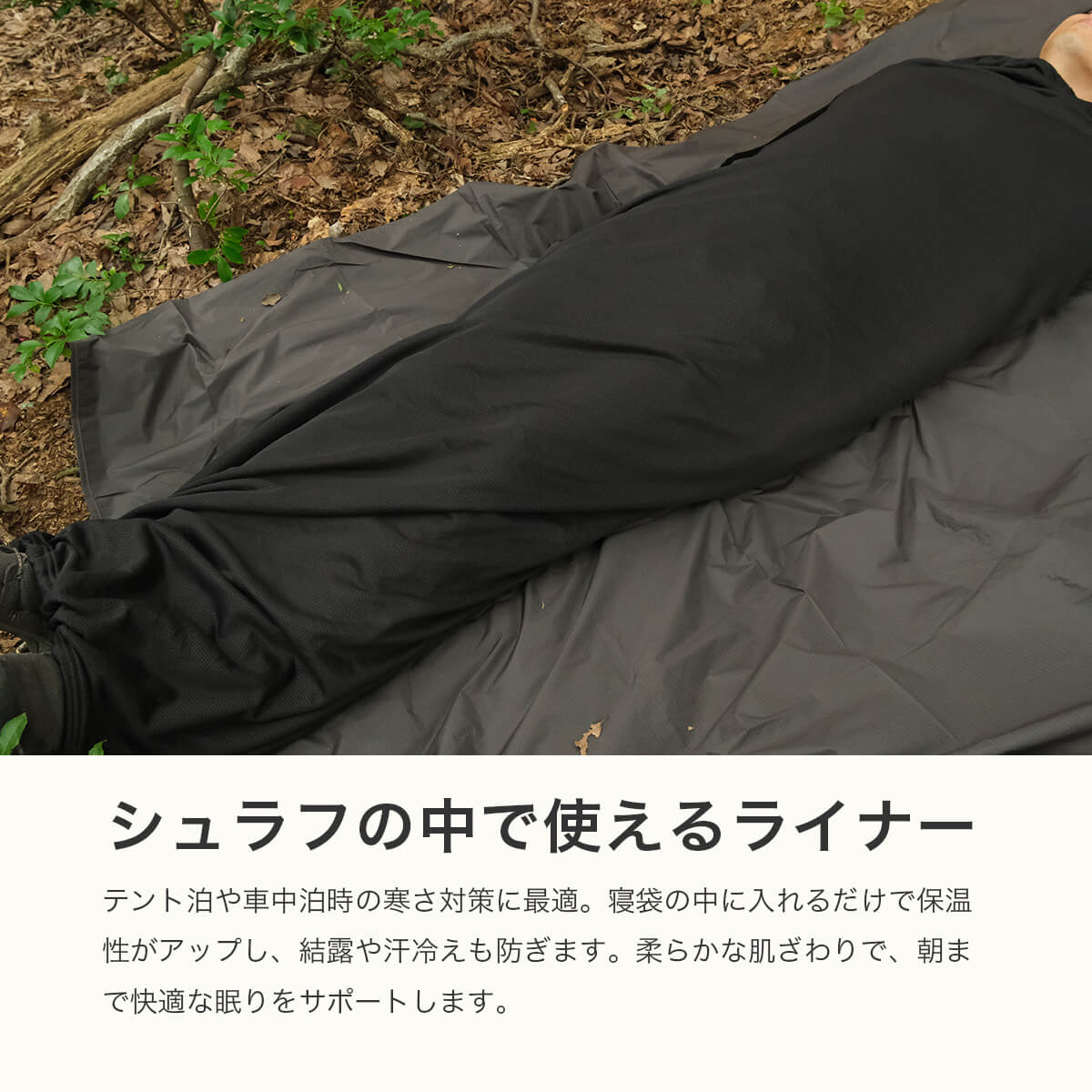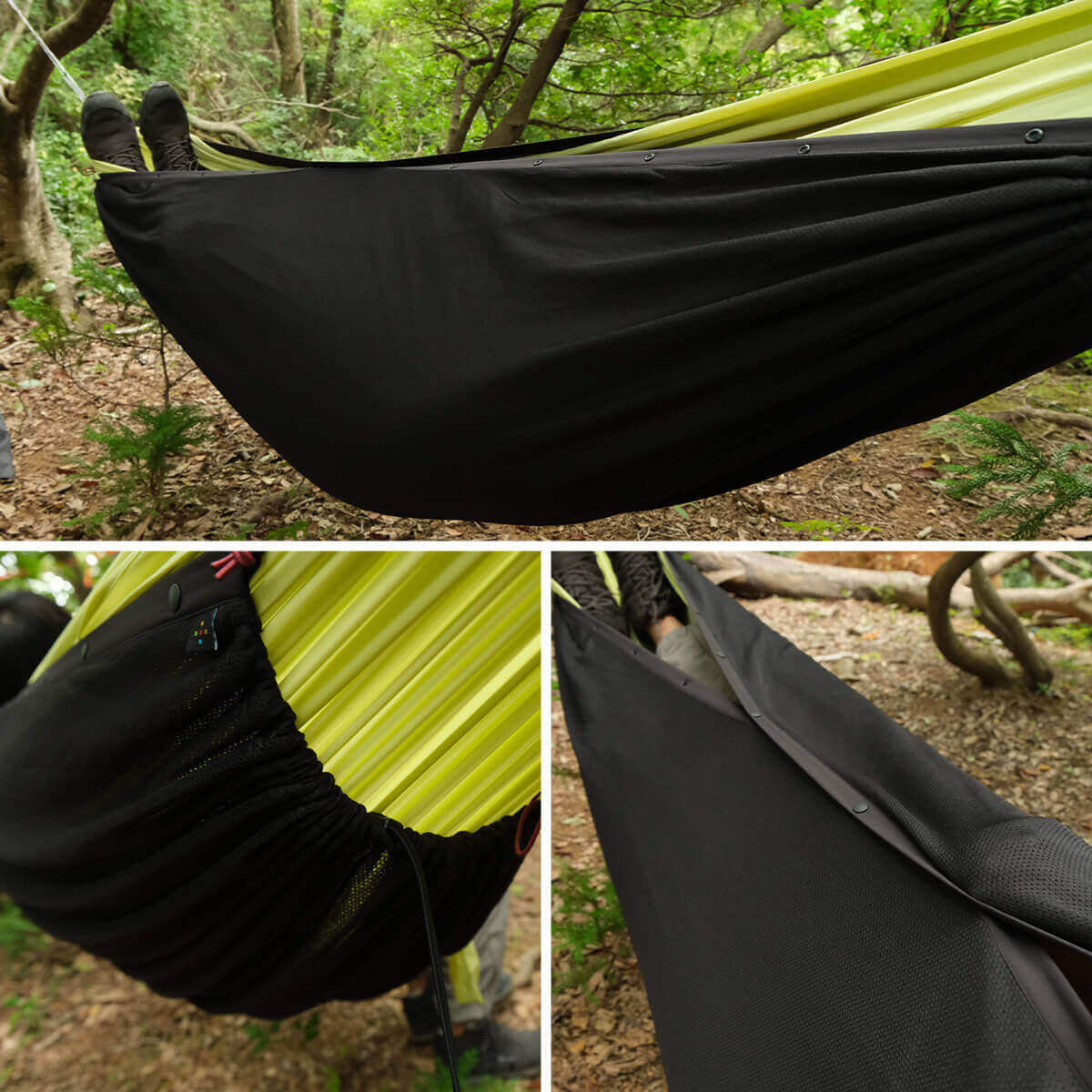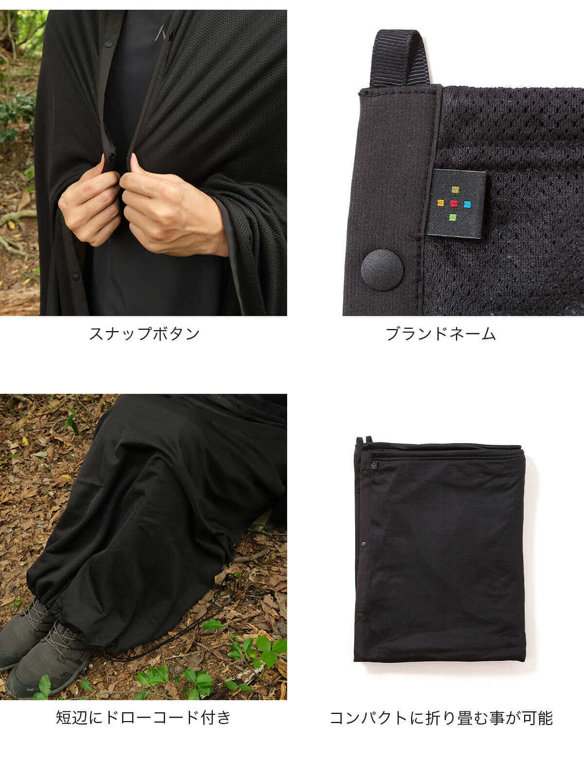 さらに短辺に仕込んだドローコードなども活用すれば、ハンモックのアンダーキルトや羽織りものとしてのアレンジも可能です。