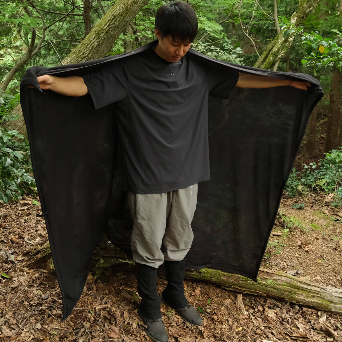 四季のある日本の低山、つまり森林限界以下の山を歩くことに特化し、「足るを知る」 という日本的な価値観のもと、必要以上に装備を持たず、自然の厳しさを「防ぐ」のではなく「凌ぐ(受け入れて対処する)」ための衣類や道具をデザインしています。