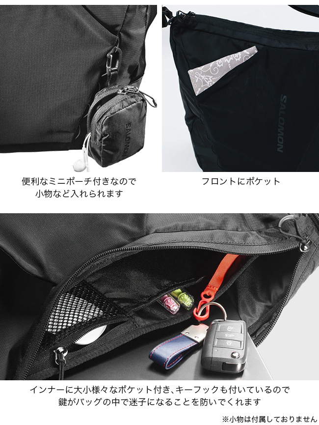 Salomonならではの機能美を凝縮し、日常からご旅行などの非日常まで、あらゆるシーンに対応する実用性とスタイルを両立したユニセックス仕様のバッグです。