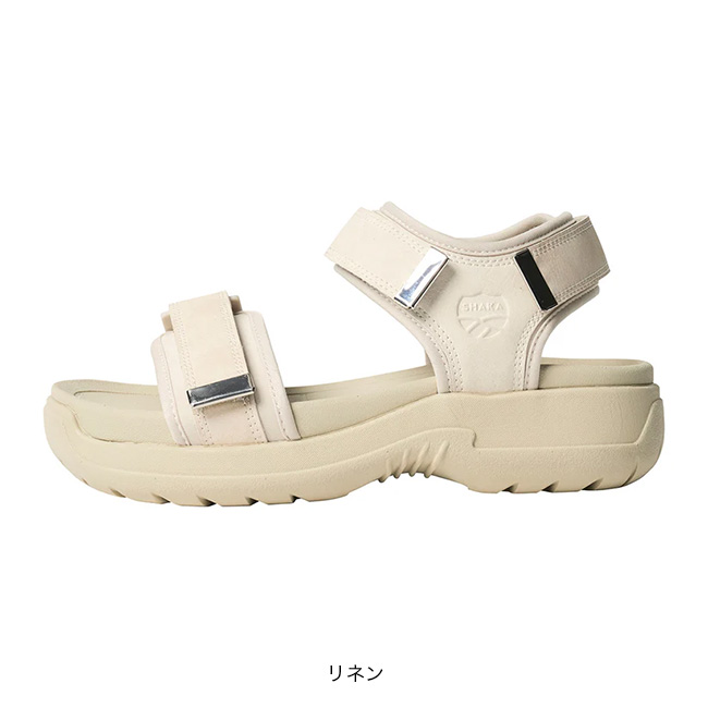SHAKA(シャカ)のサンダルらしい足首周りのディテールとワンストラップのシンプルなアッパーに、レザー調PUとメタルパーツが融合したシックなデザインで、カジュアルからシックなコーディネートまで、メンズ&レディースともに幅広いシーンでお楽しみいただけます。