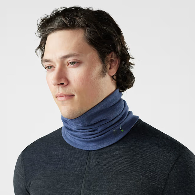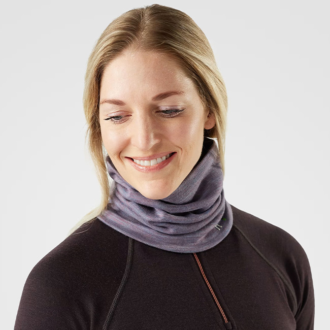 肌触りの良い厚手のメリノウールをダブルにし保温性を高めたネックゲイター