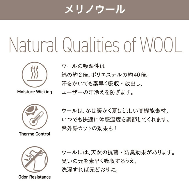 ふっくらとしたニットは着心地がよく、ウール特有の抗菌・防臭効果も兼ね備えています。