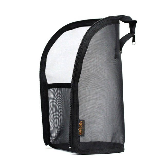 素材は、本位部分全てを極限まで細かいメッシュで虫や埃の侵入を防ぎ、水が溜まらないので、洗って濡れた状態で入れてどこかに吊下げておけば、乾くという機能的かつStylishなメッシュケースです。