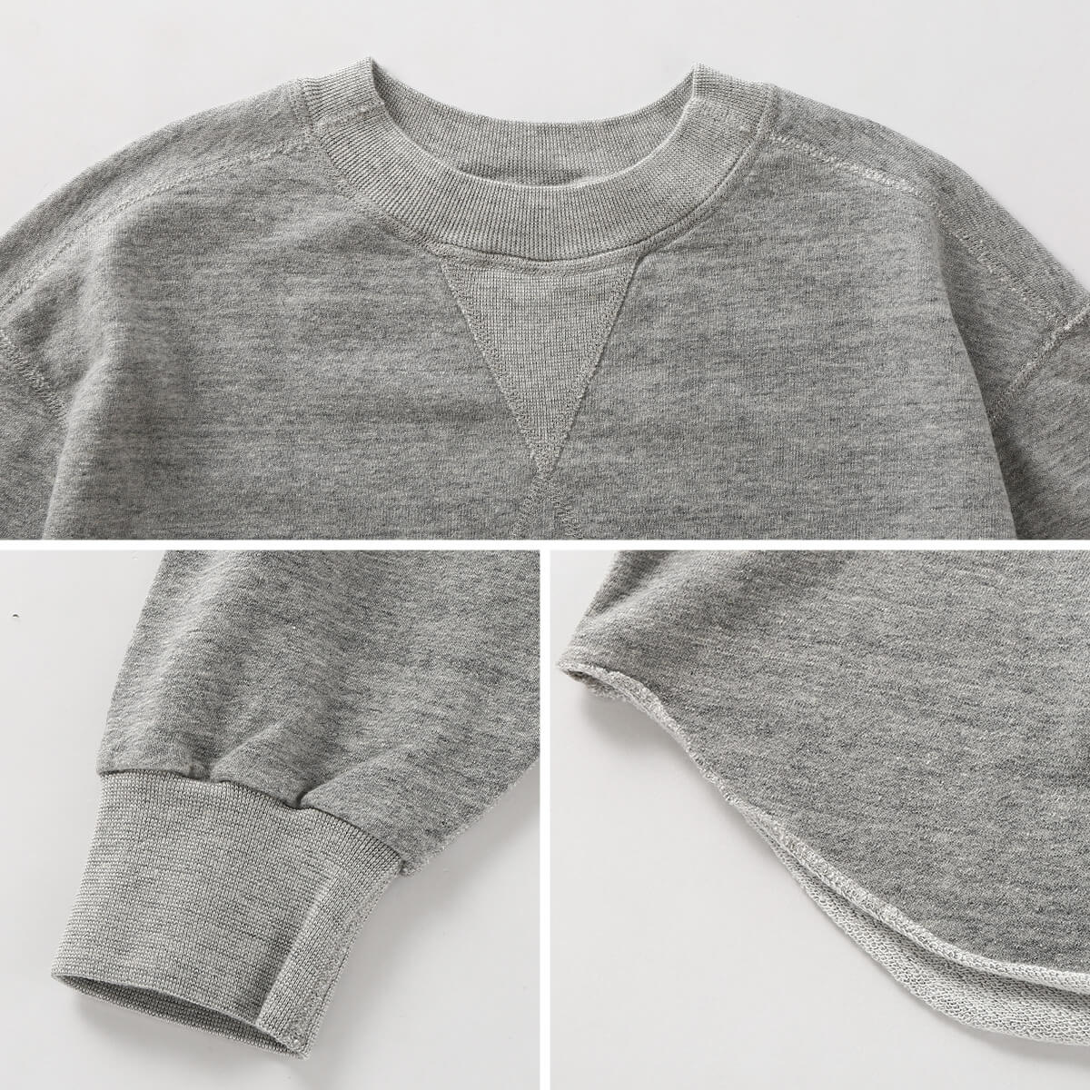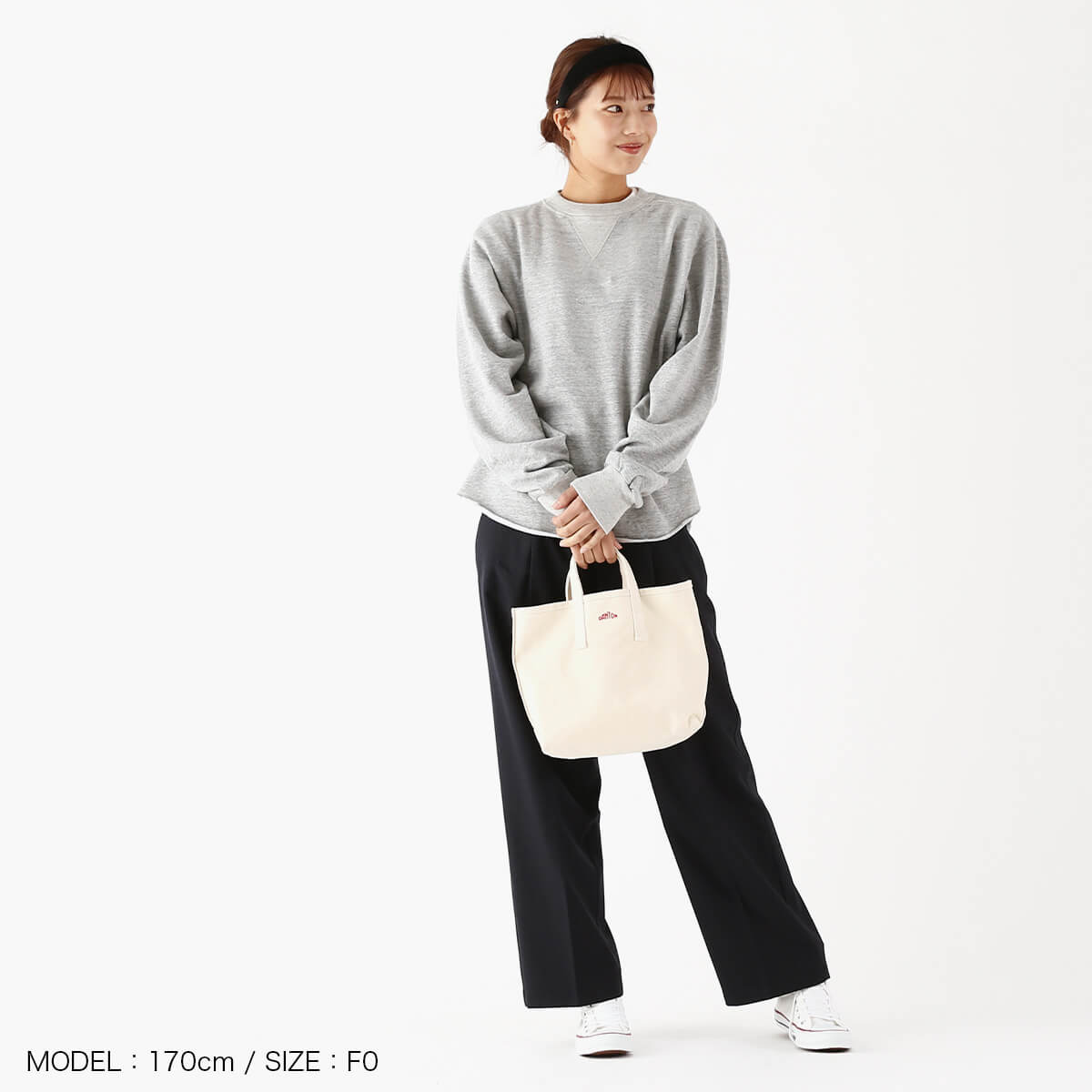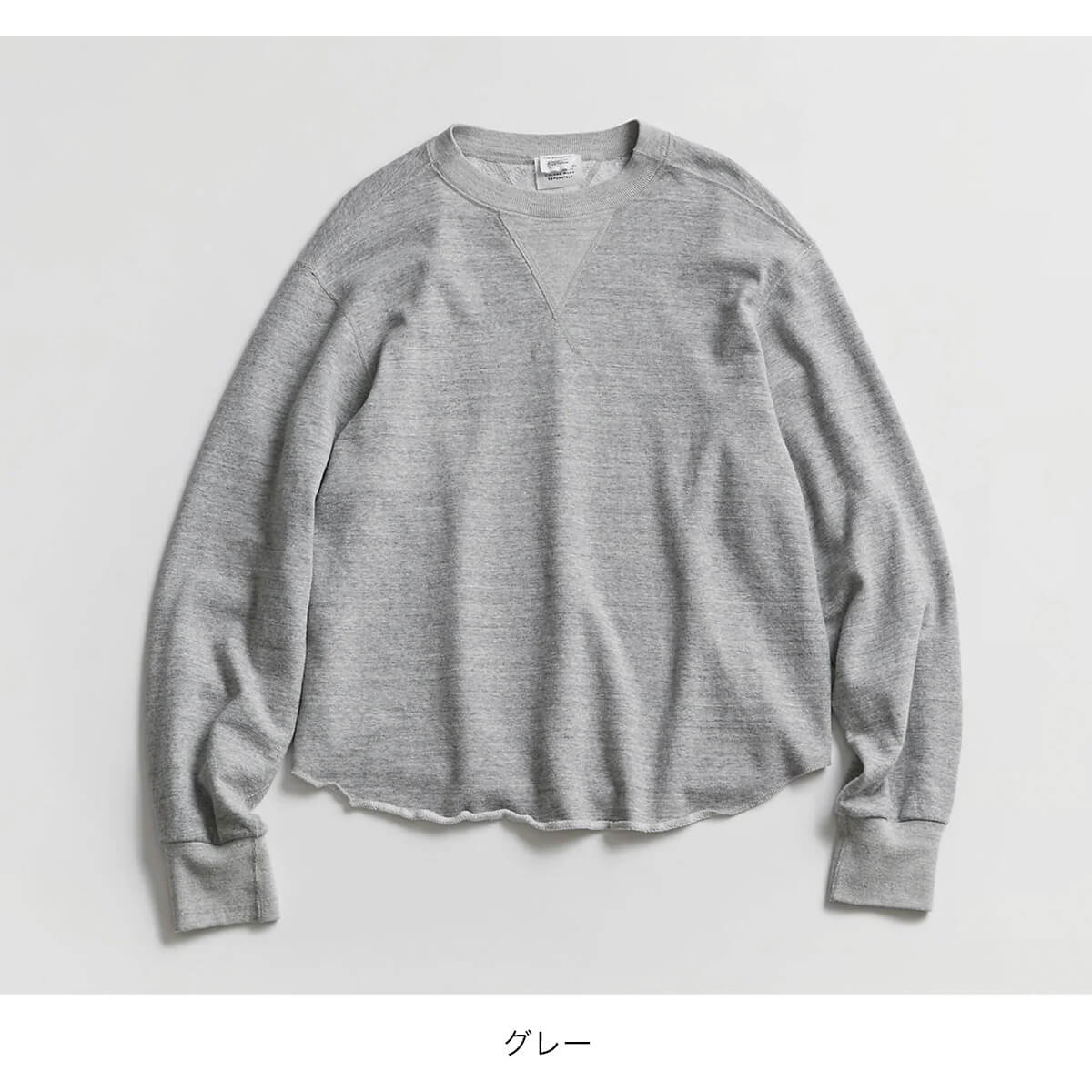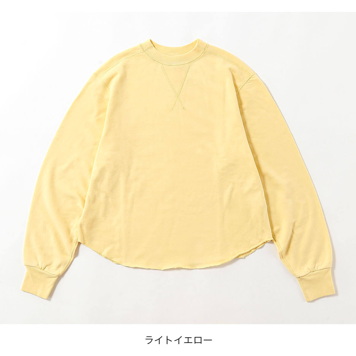 ボトムインできるスウェットを作りたくて、薄手の生地からオリジナルで作ったガゼットスウェット。インすることを前提に作っているので、裾にはリブをつけず、ボトムの中で生地がゴロつくのを軽減しています。