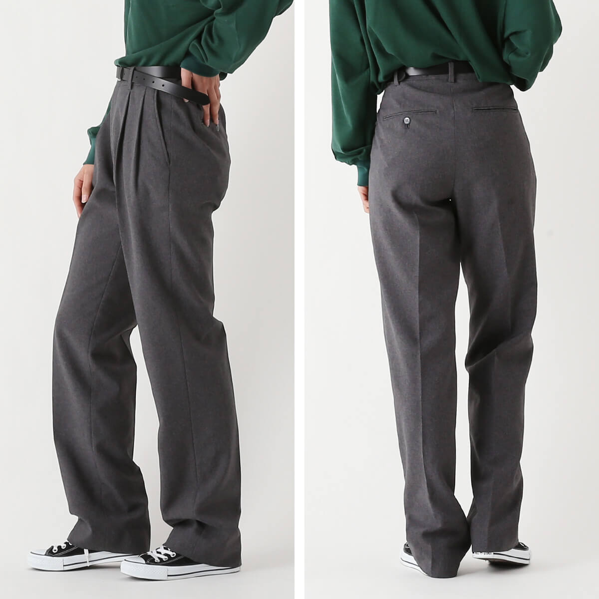 古着屋に並ぶ“おじさんパンツ”をヒントに作った2タックパンツ。
