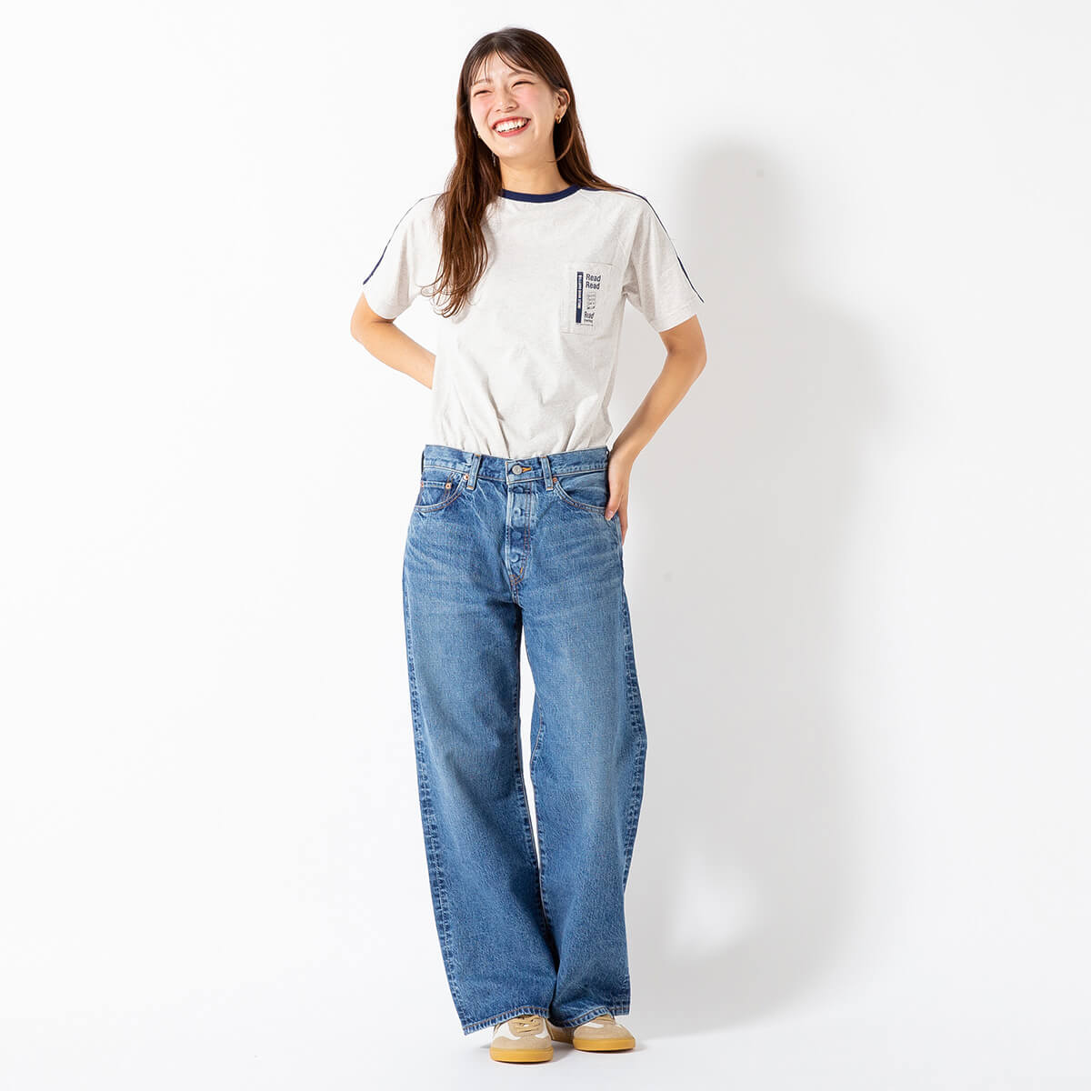 13.5ozのデニムを使用しているので、メンズライクなボリューム感です。潔くTシャツを合わせてカジュアルに着てもカッコイイし、上質なジャケットにもいいスパイスに。