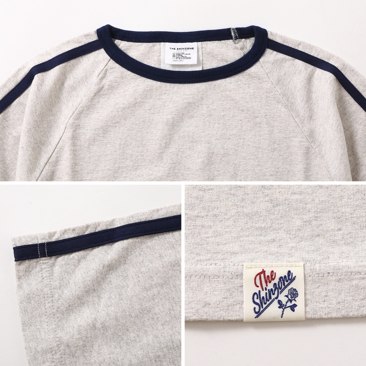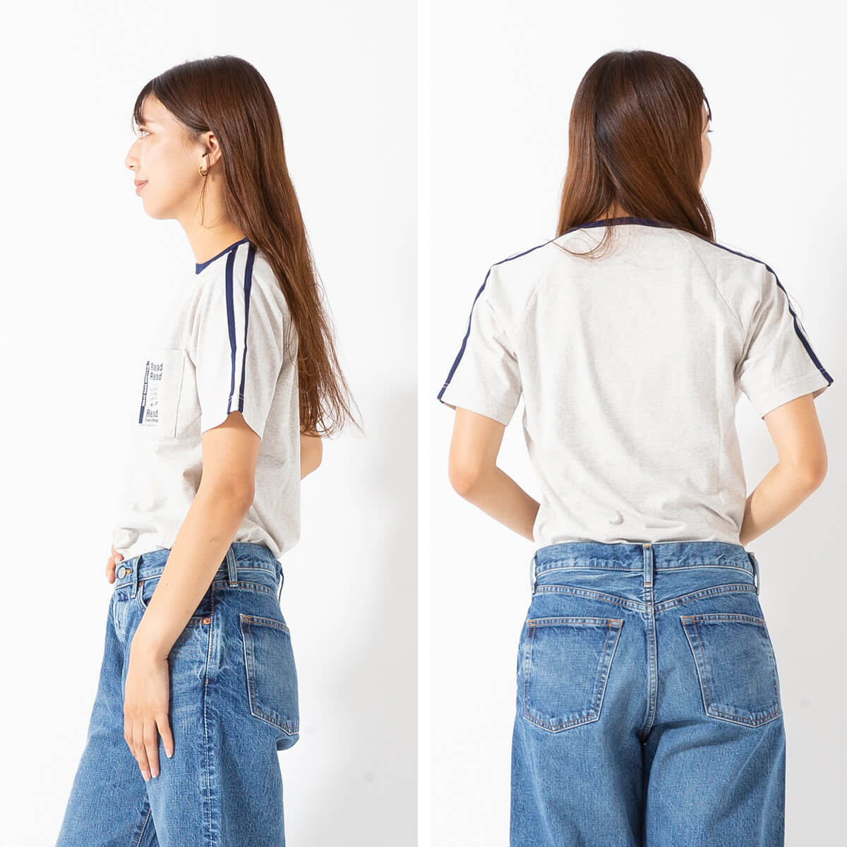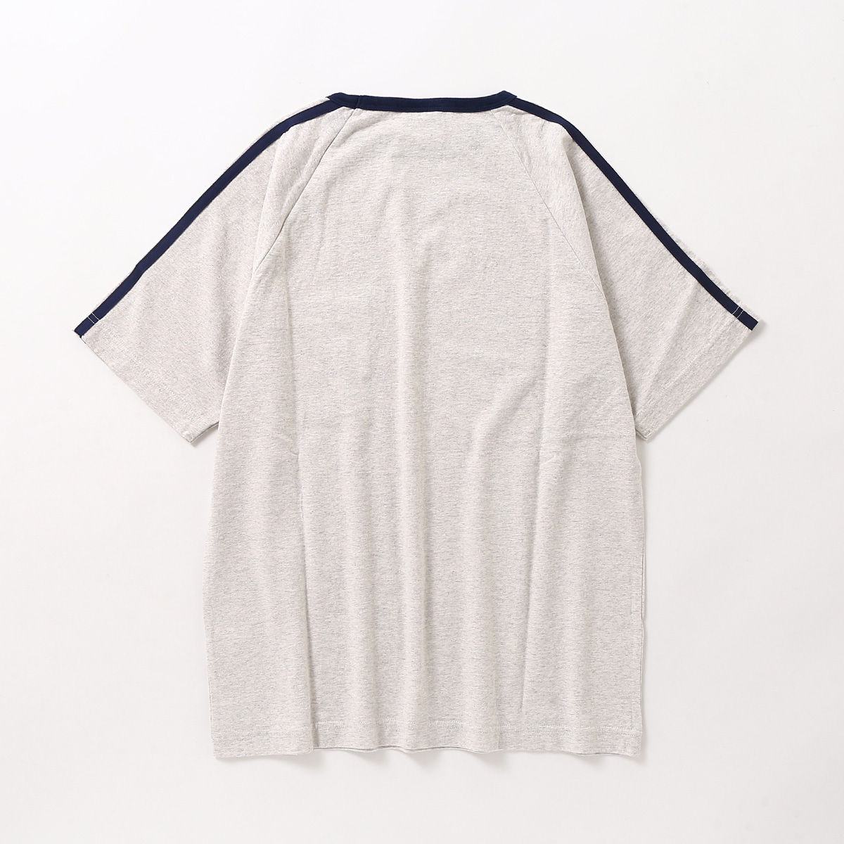 袖の2本ラインと襟のバインダーを配色にし、レトロでスポーティなデザインのTシャツ。