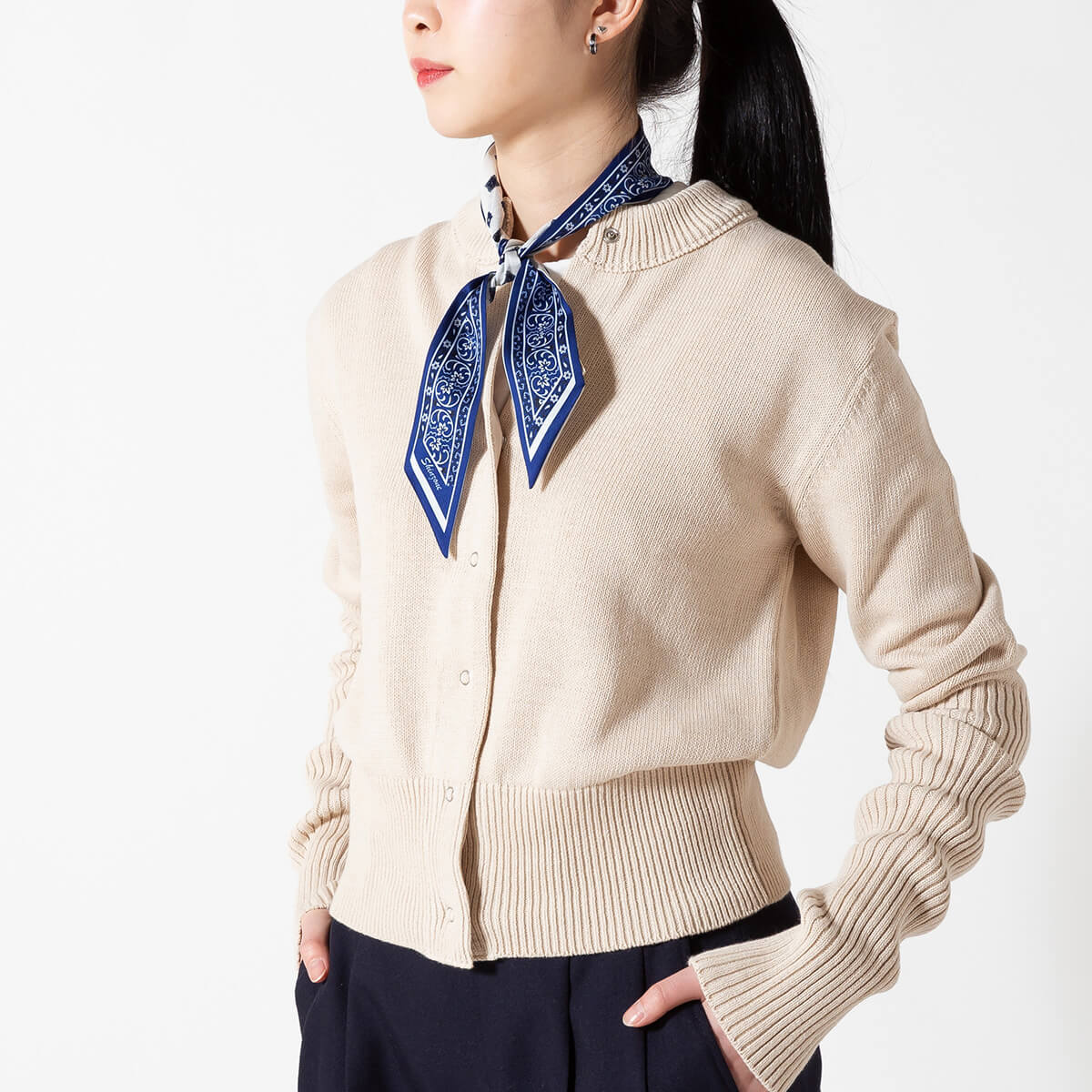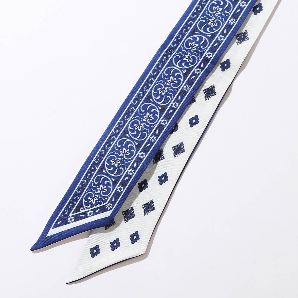 バンダナ柄とカーペット柄による両面プリント。ありそうでなかったバンダナスカーフです。