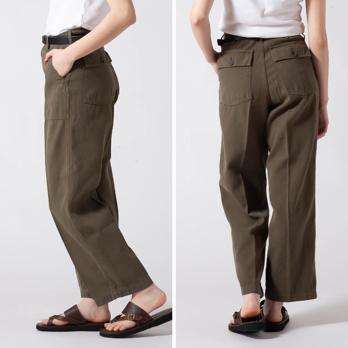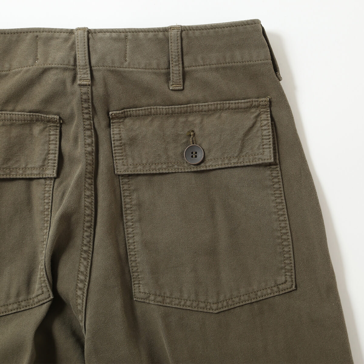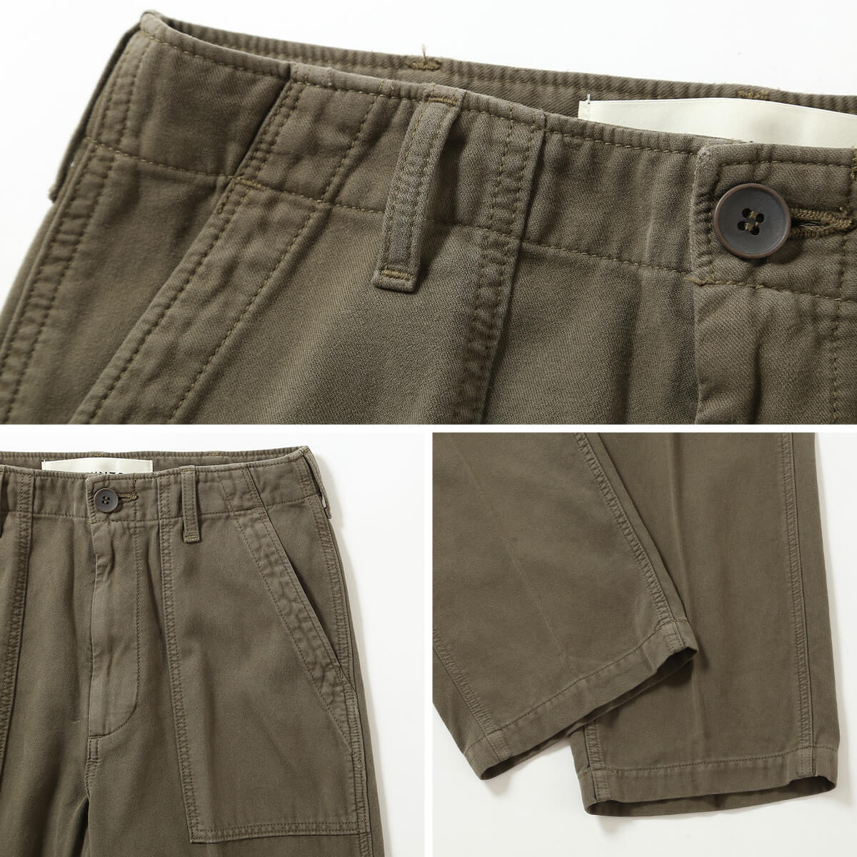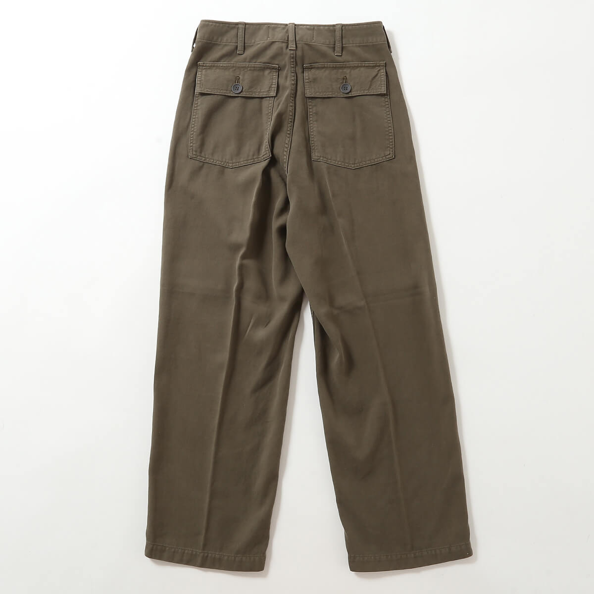 BAKER PANTS TYPE-3のシルエットを引き継ぎながら、経(たて)2重織りの生地を仕様し、柔らかさと膨らみ感を演出しています。ストーンウォッシュで生み出したアタリと微起毛はまるで、ヴィンテージそのもの。