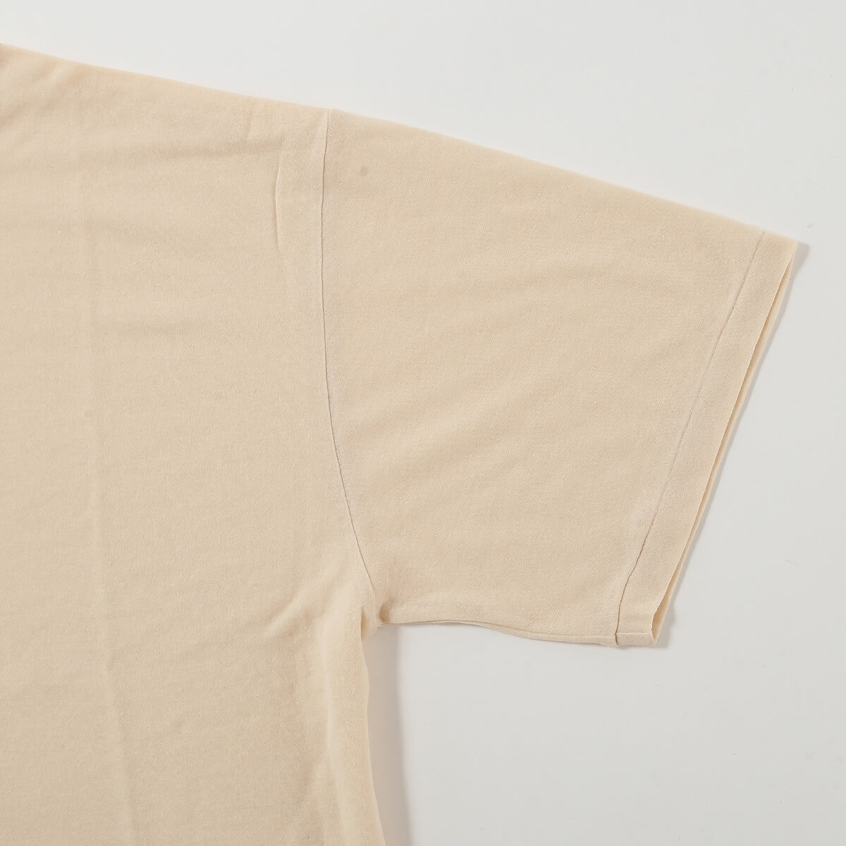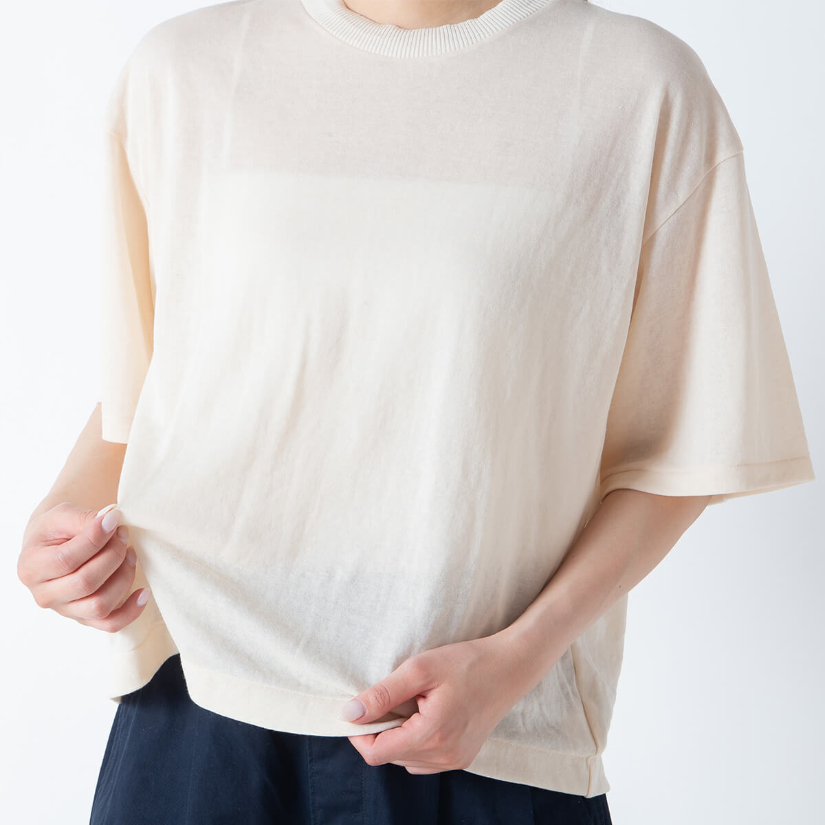 コットン×モノフィラナイロンの2重組織の接結編みの絶妙な透け感が魅力のTシャツです。過剰にならない透け感が大人のムードを加速。
