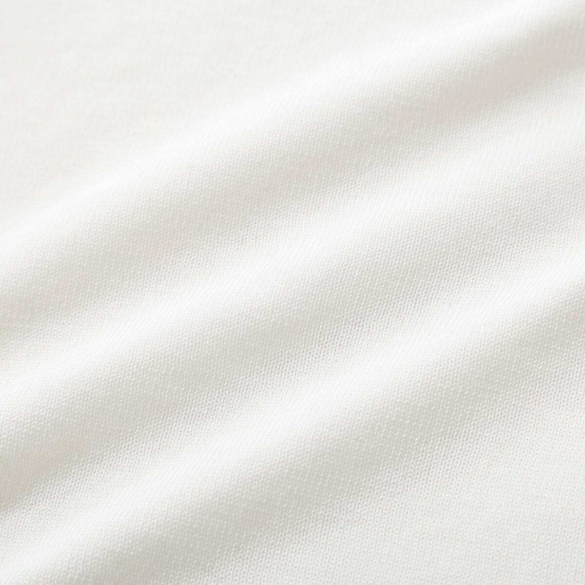 植物性の油脂が適度に含まれているため、滑りのある光沢が特徴で、別注の追撚加工によりさらりとした肌触りで快適な着心地を実現しています。