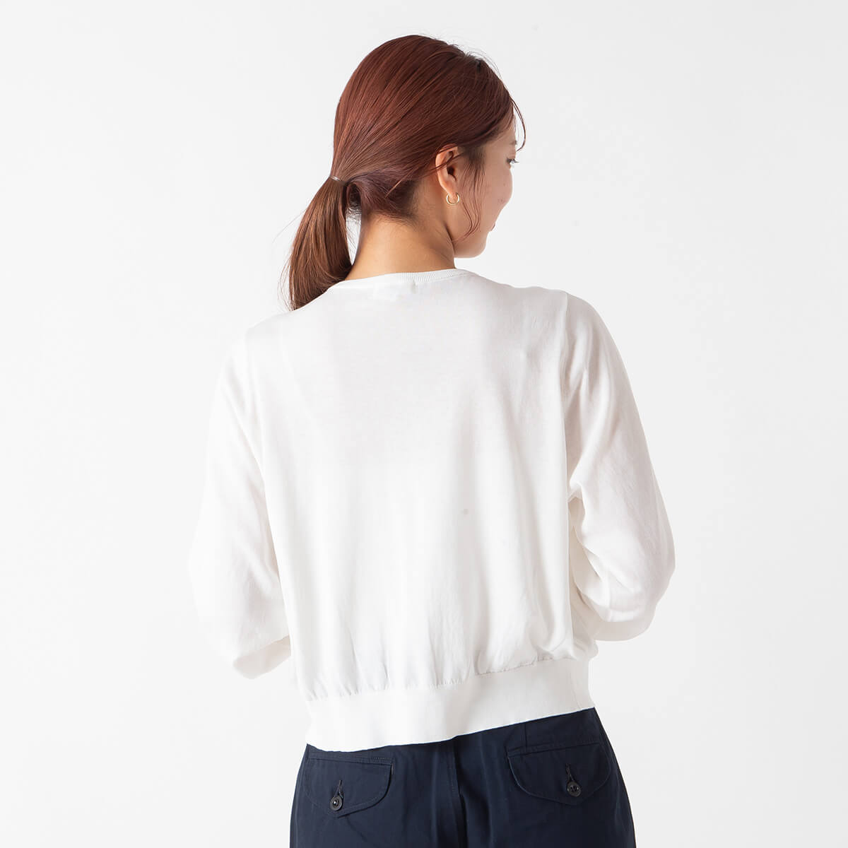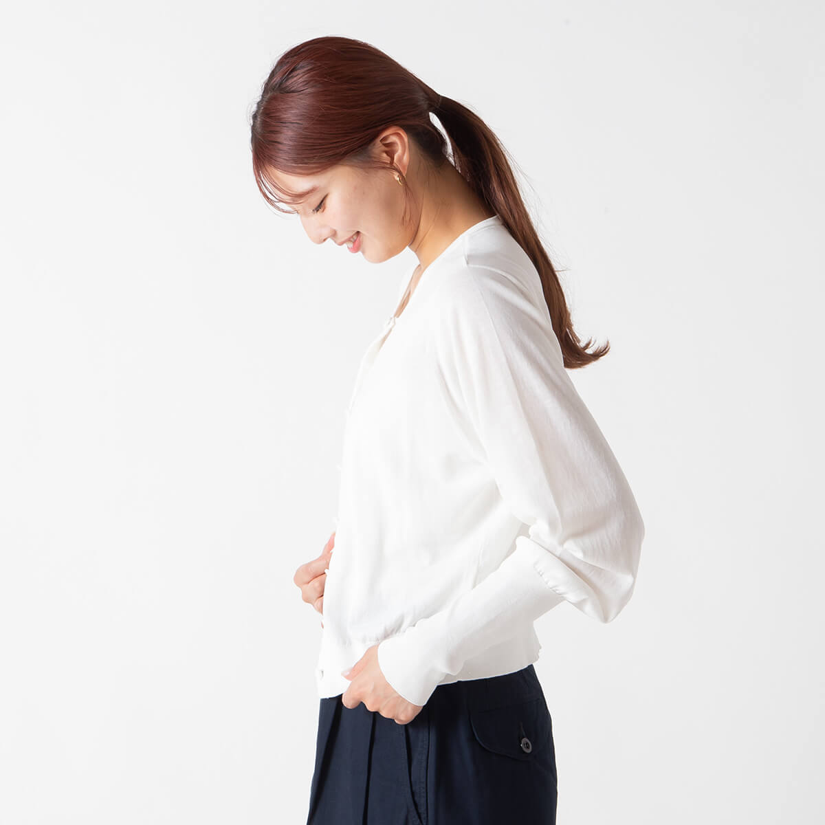 超長綿にガス焼きを施した最高級コットン糸を使用したコットンカーディガン。ガス焼き加工によって毛羽立ちが抑えられ、さらにシャープで洗練された風合いに仕上がっています。