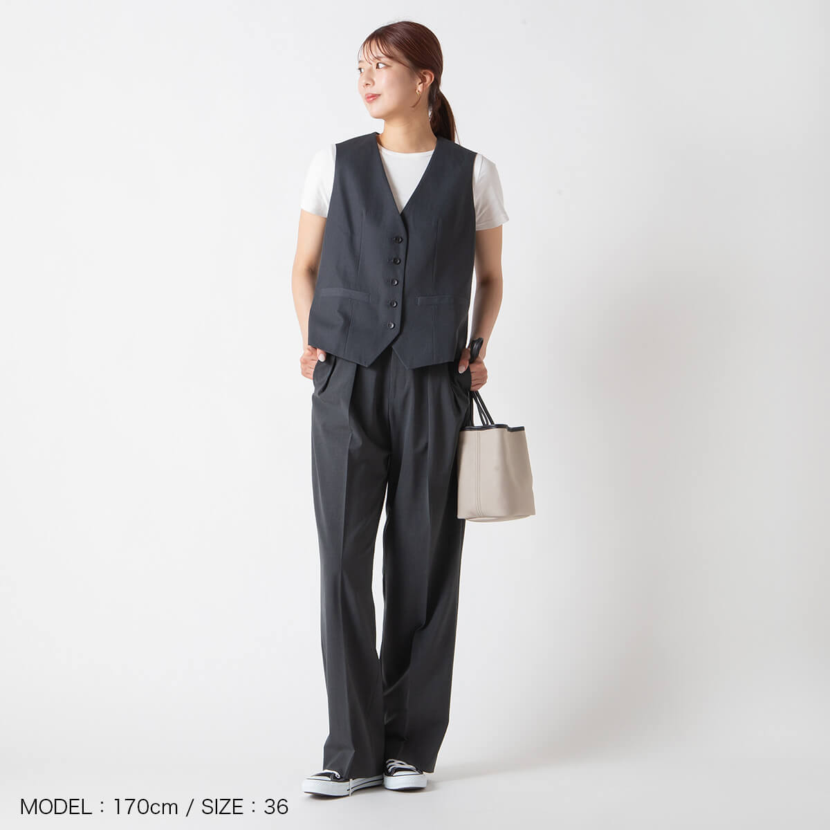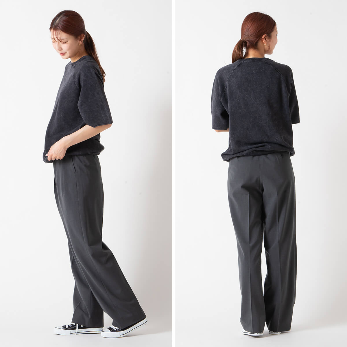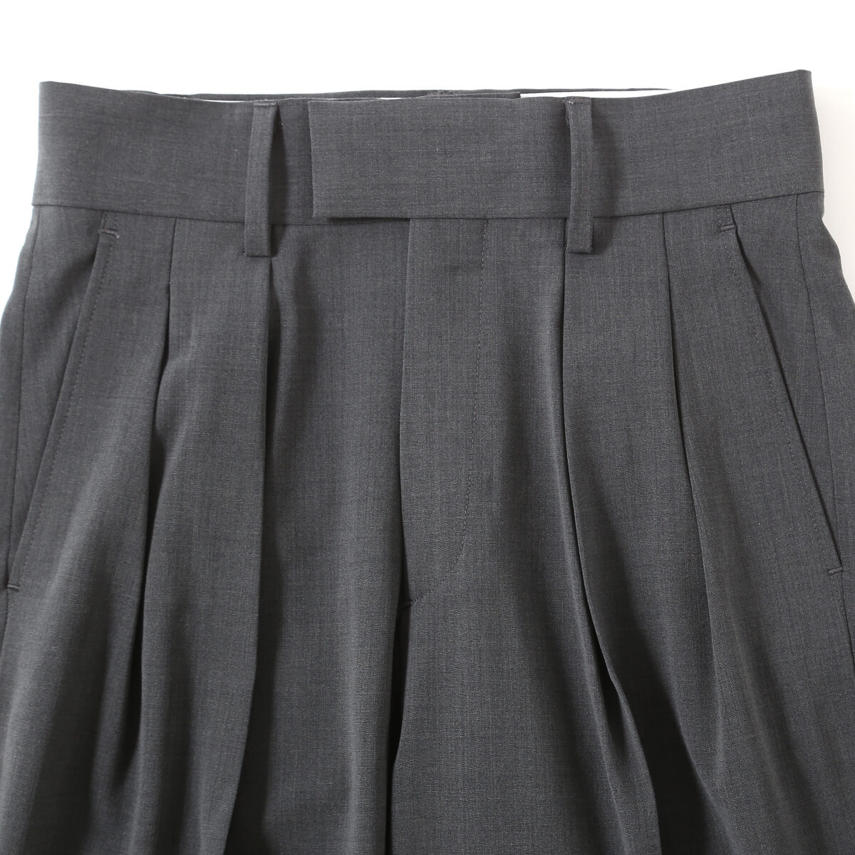 深めのタックを施したゆとりのあるシルエットは、カジュアルからきれいめまで幅広いスタイリングに対応し、シンプルなTシャツと合わせても上質に決まる万能アイテムです。