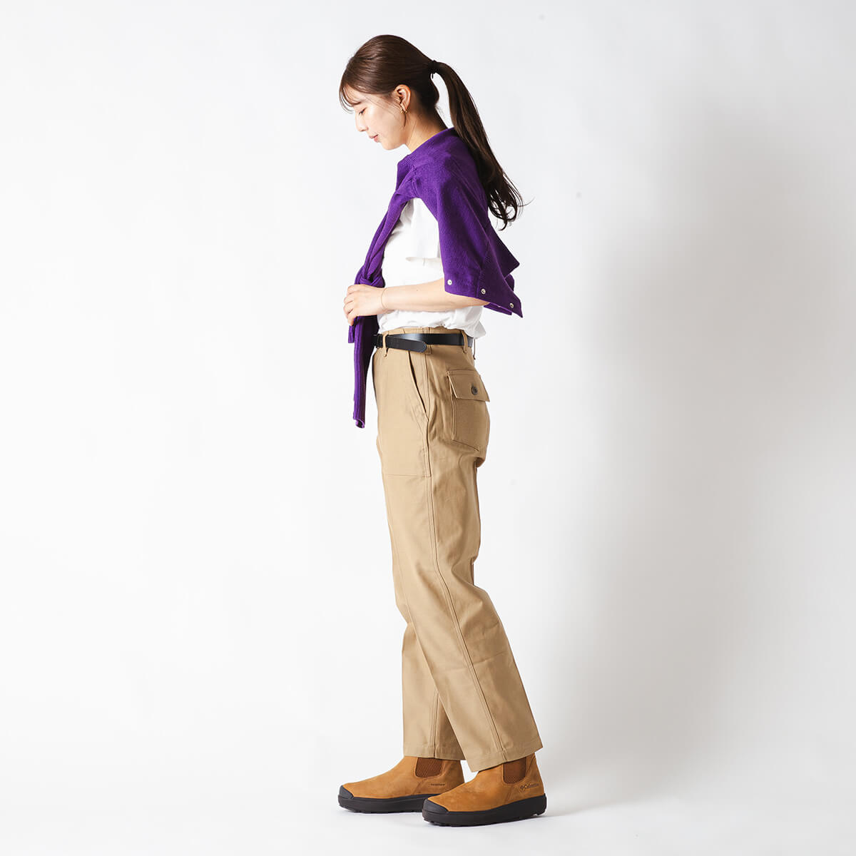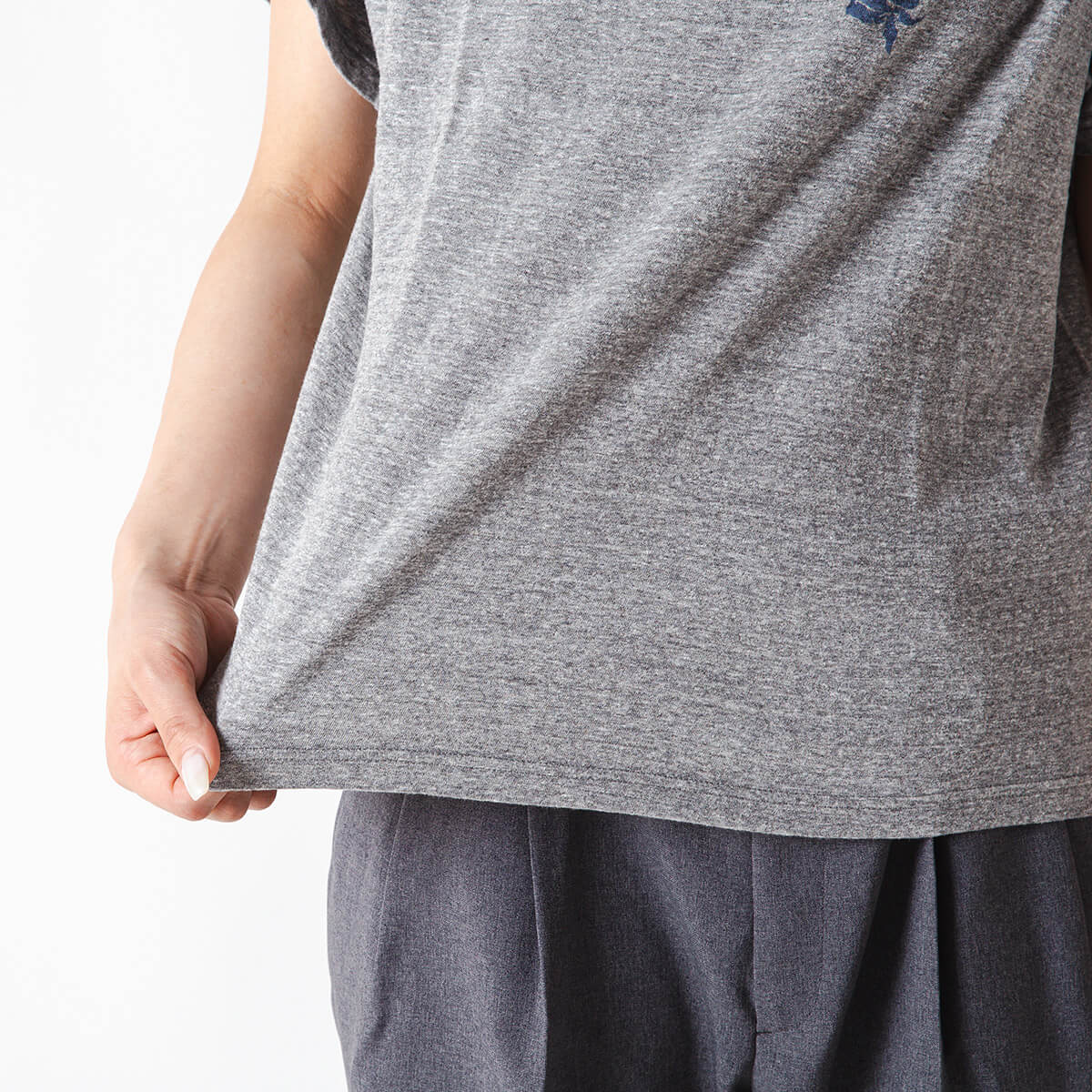 ボディには、糸を製造する過程で生じる落ち綿を再利用したラフィ天竺を使用。柔らかな肌触り、そして脇に縫い目がない「丸胴」仕様でボディにフィットする着心地の良さが魅力です。