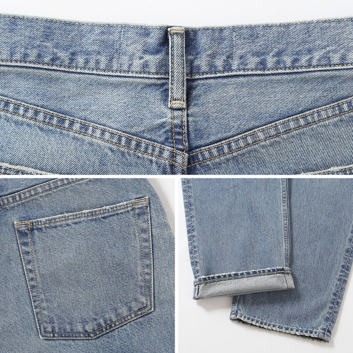 ステッチを濃淡をつけた2色づかいに、さらにリベットをシルバーで仕上げたことで、ヴィンテージデニム初心者の方にも履きやすく仕上げています。