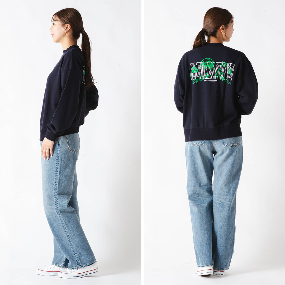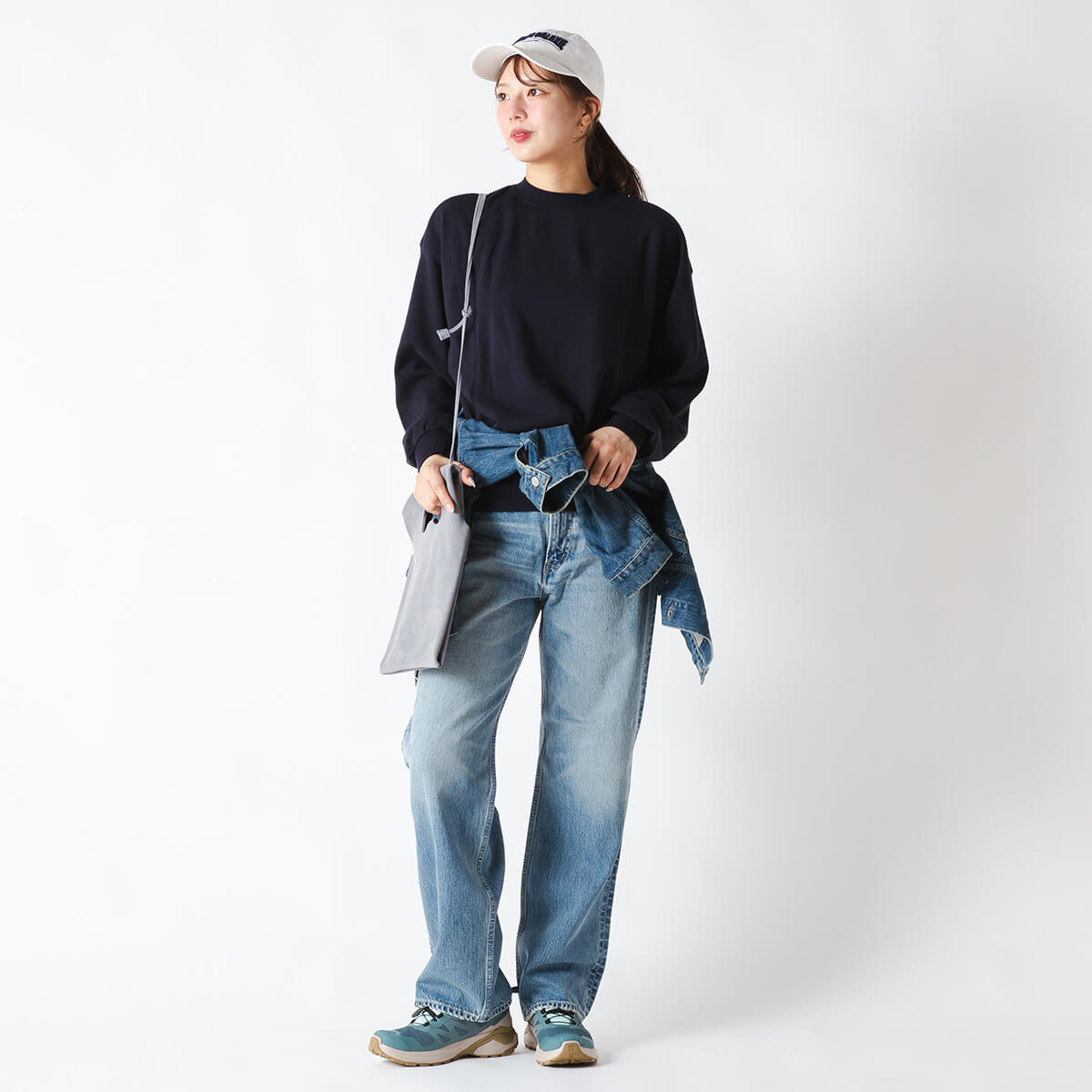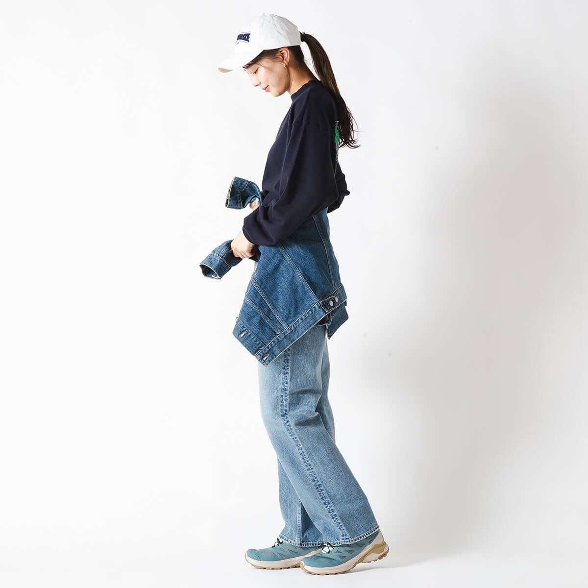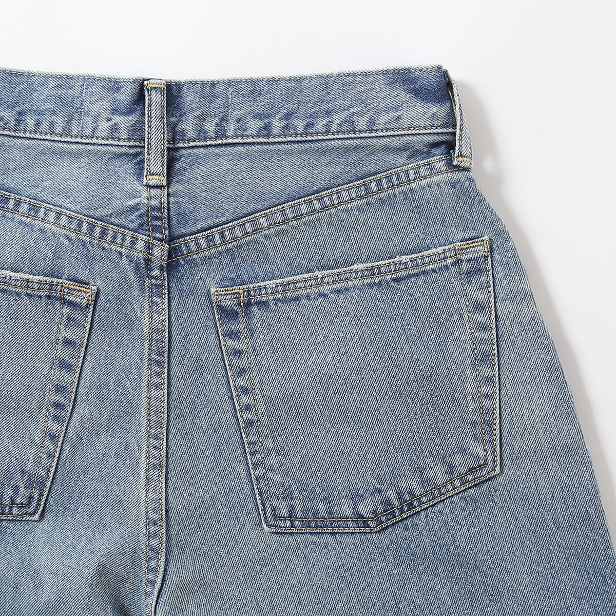 ジャストウエストで履く、セミワイドシルエットのデニムパンツです。