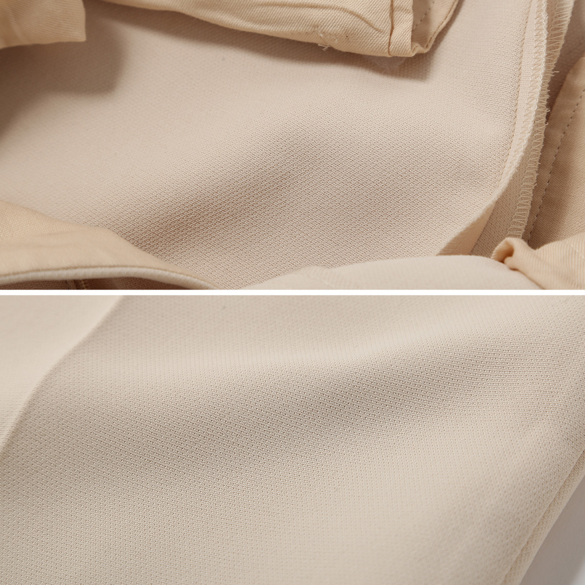素材には表面がなめらかで上品な光沢のある三重織生地を使用。厚みがあってしっかりした生地感のため、きれいなシルエットをキープします。