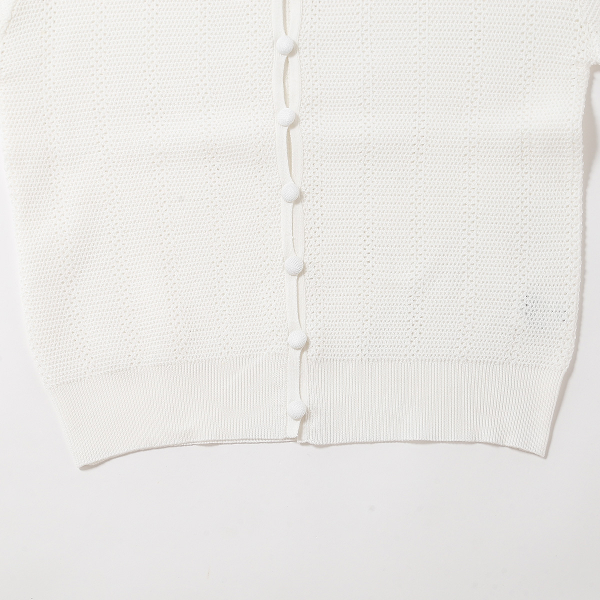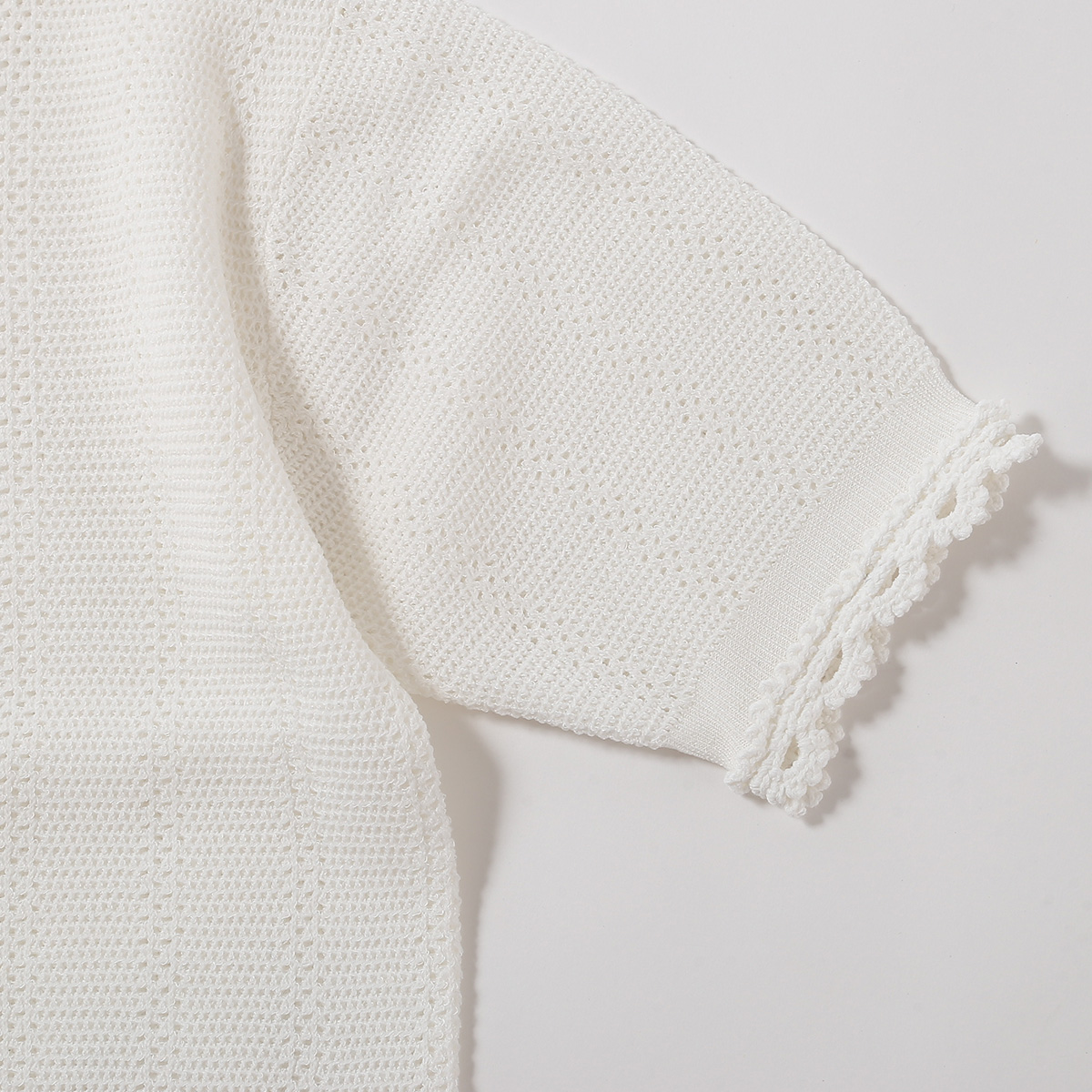 透け感のあるレース編みの半袖ニットカーディガン
