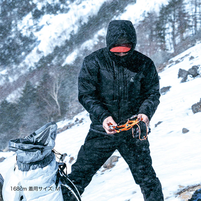 ・新開発の100g/m² AIR FLAKE®850FPシートを2枚重ねた保温力の高いビレイパーカー
