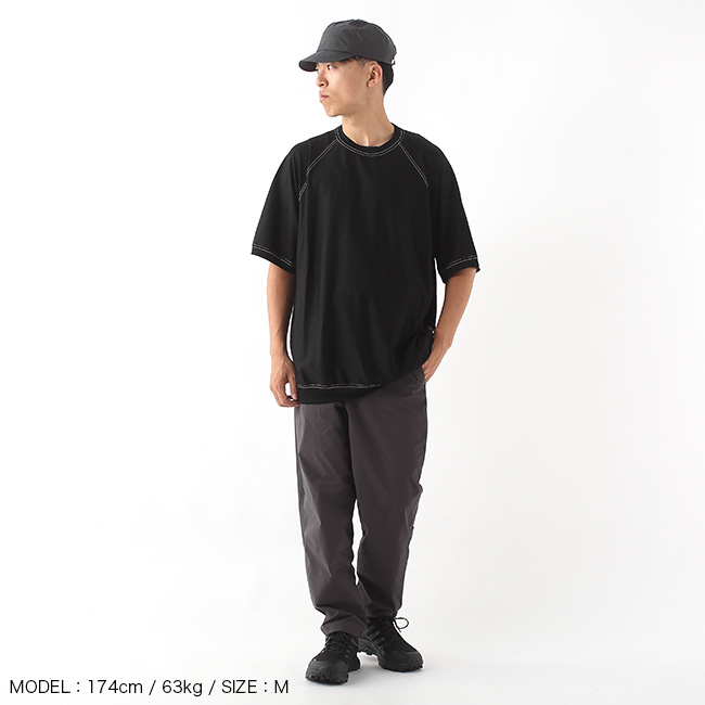 何度もサンプルアップとテストを繰り返し完成したDrifter LT Pantsはヒップや太もも周りは窮屈感の無いリラックスフィットかつ、裾周りはダブつきが少なく足捌きもし易いシルエットに仕上げました。生地は105g/m²と薄手になりますが、薄すぎずハリとコシのある生地で通年しっかりと使っていただけます。