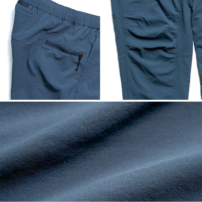 生地は、長期間の使用における型崩れの原因となるポリウレタンを使わずにストレッチ性を出し、濡れで重くなることも軽減しています。また、一般的なリサイクル6ナイロンより耐摩耗性に優れたリサイクル66ナイロンを使用。