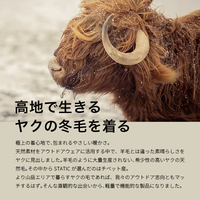 ヤクウールと羊ウールを組み合わせた極上のリラックスシャツです。ヤクの毛は非常に細く、直径は20マイクロン以下で長さは3.5~4.5cmほど。