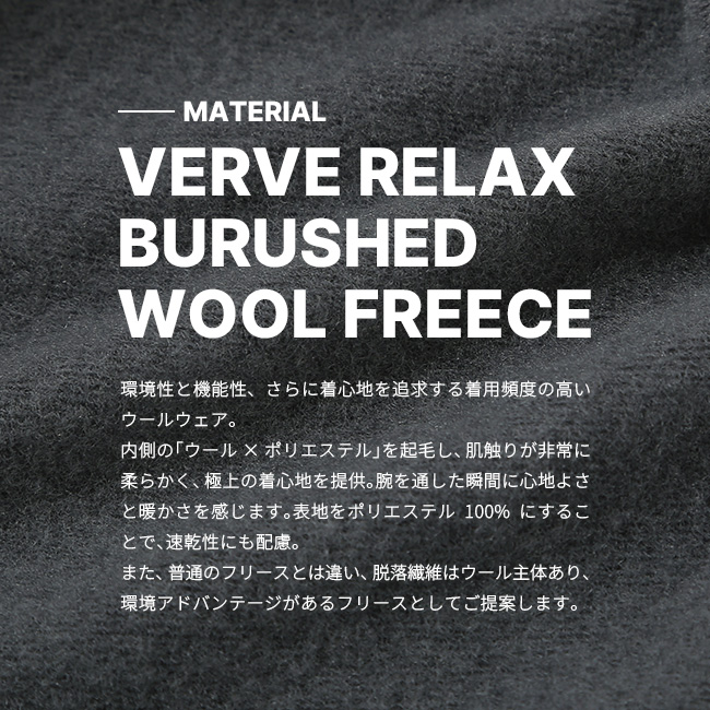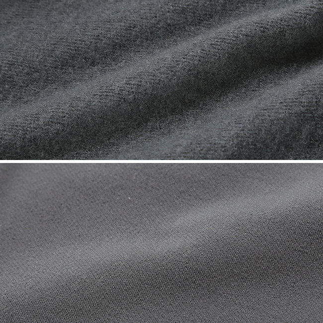 素材は螺旋状のポリエステルをウールで包んだ混紡糸の起毛なので、化繊とウールの良いとこ取りです。