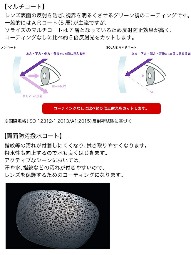 レンズ/ポリカーボネイト(耐傷性特殊コート、裏面マルチコート、撥水防汚コート)