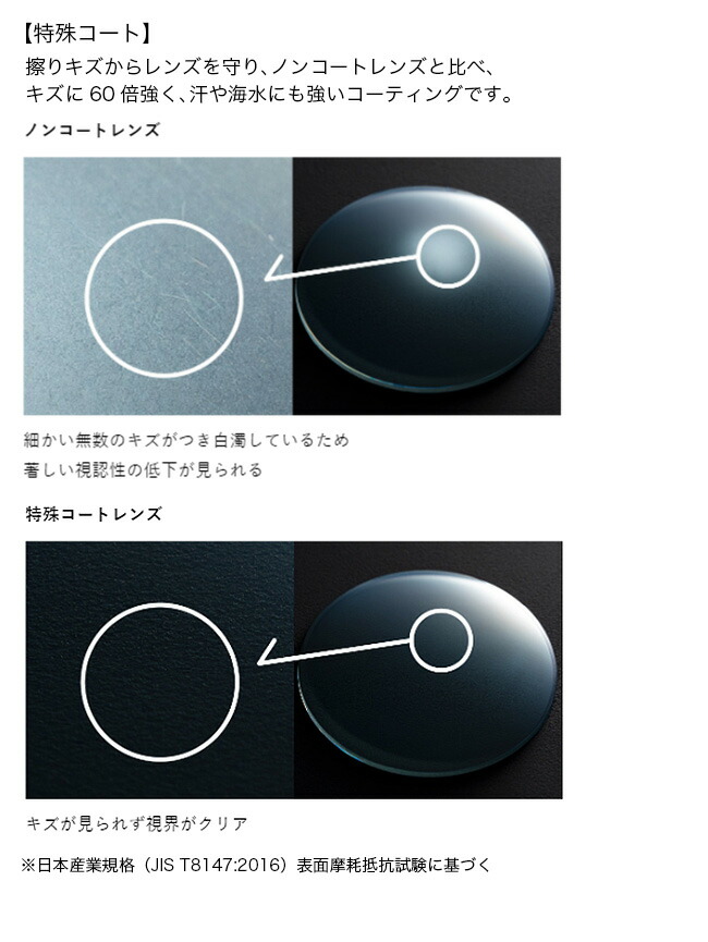 レンズ/ポリカーボネイト(耐傷性特殊コート、裏面マルチコート、撥水防汚コート)