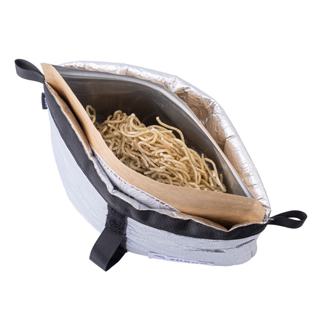 Tyvekシルバーと3Mシンサレートの組み合わせにより高い保温力を実現し、蒸れを軽減しながら、結露による漏れも防ぎます。スモールサイズは尾西・サタケなどのアルファ化米やジップロックS に、レギュラーサイズ(別売)はB.C.FOOD、リゾッタ、スモールツイストなどに対応。