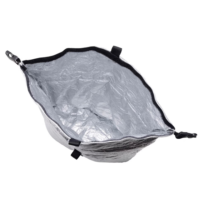 高遮熱性のTyvekシルバーと3Mシンサレートが、ビール缶や冷凍肉を冷たく保ち、また精密機器やバッテリー、カメラレンズの保護にも対応します。レギュラーサイズはロールトップ式で、内容に応じてしっかり圧縮できバックパックへのパッキングに助かります。