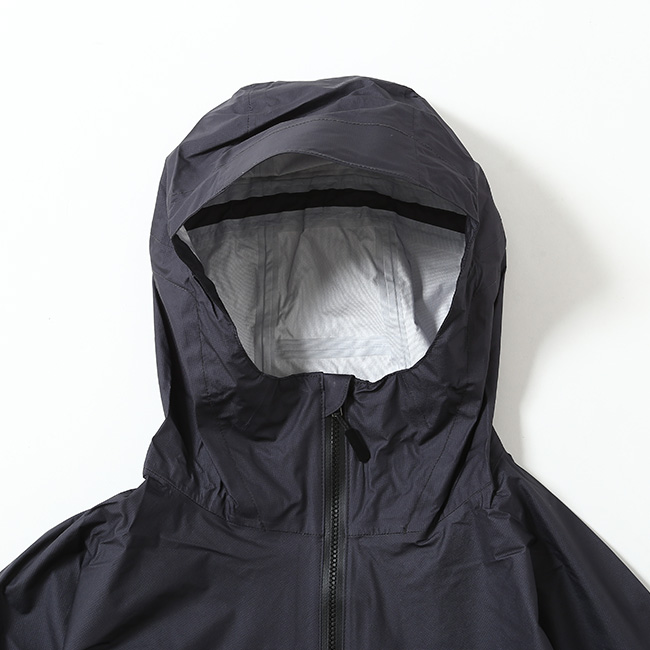 フードは大き目に設計され、後頭部のドローコードでフィッティング調節ができます。