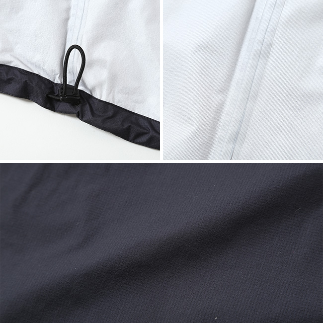 3レイヤーの生地は、透湿性に優れ、薄く軽量。メンブレンに目に見えないほどの小さい孔を施した多孔膜構造により、ジャケット内の空気を外に排出しやすく、生地も軽量になっています。