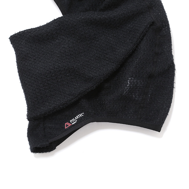 多用途デザイン。ネックゲイターとして首元を暖めつつ、必要に応じて口元まで覆うことが可能。