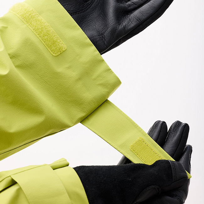 ヘルメット着用時でも使用可能なフードは、微調整が可能なシステムを備えています。