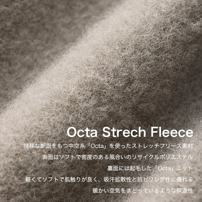 表面はリサイクルポリエステル、裏面は起毛させた「Octa」というダブルフェイス構造。