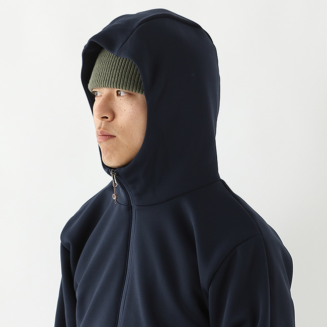 「Octa Stretch Fleece」のシリーズに新たに加わった、ジェンダーレスのフルジップフーディです。フロントジッパーは、ダブルスライダー仕様で下から開放するとベンチレーションとしても機能します。