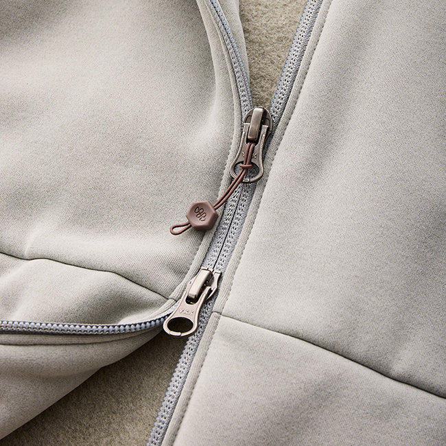 「Octa Stretch Fleece」のシリーズに新たに加わった、ジェンダーレスのフルジップフーディです。フロントジッパーは、ダブルスライダー仕様で下から開放するとベンチレーションとしても機能します。