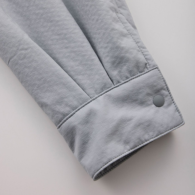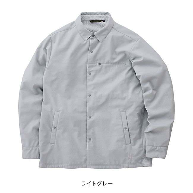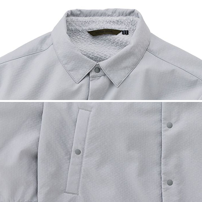 TETON BROS.独自の動的保温素材「Stretch Octa Bonding」でシンプルなシャツを仕立てました。見た目こそクラシカルですが、部分的に開くことができるスナップボタンはベンチレーションとしても機能的で、襟を立てることで日差しや風を防げます。