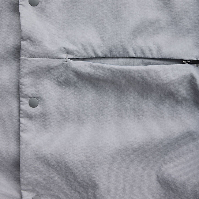 ゆとりを持たせたシルエットでレイヤリングしやすく、ミッドレイヤーとしてはもちろん、シャツジャケットのような使い方も可能。