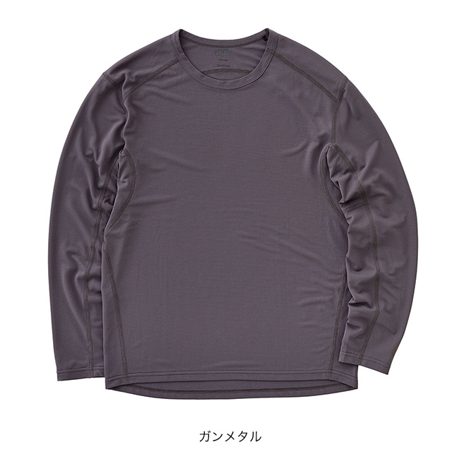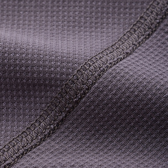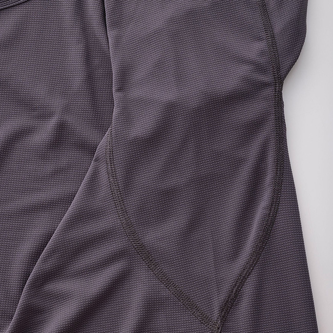 汗を吸って拡散・蒸発させる従来のベースレイヤーとは違い、かいた汗を生地表面から弾き落としてドライな着心地を維持。