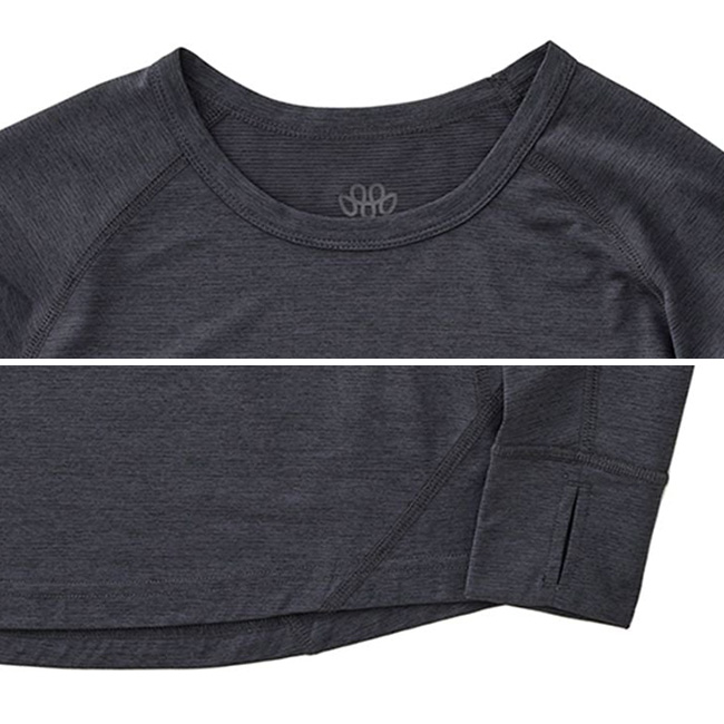 袖にはサムホールを備えて、ランニングやクライミングで袖がずり上がるのを防ぎます。