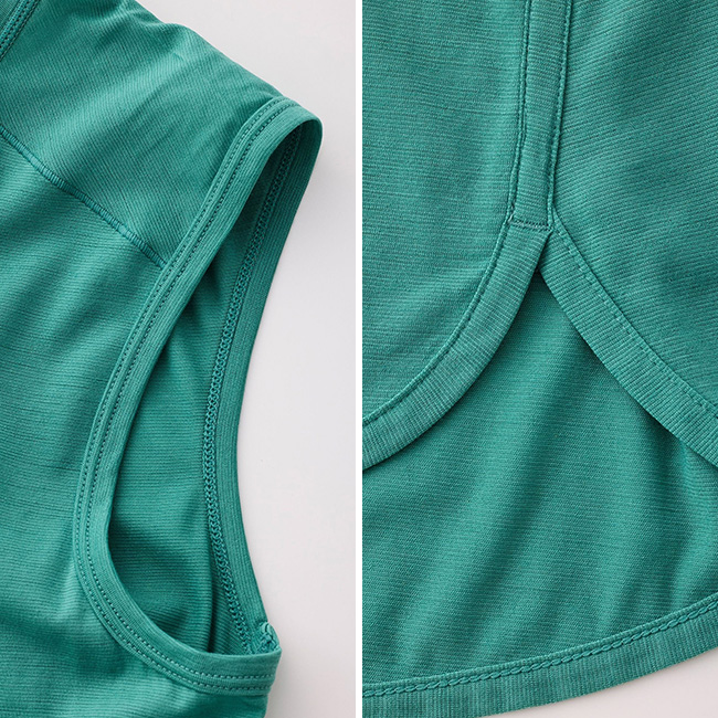 両脇のスリットで自然なドレープが生まれ、走ったときにも裾がめくれ上がりにくくなっています。